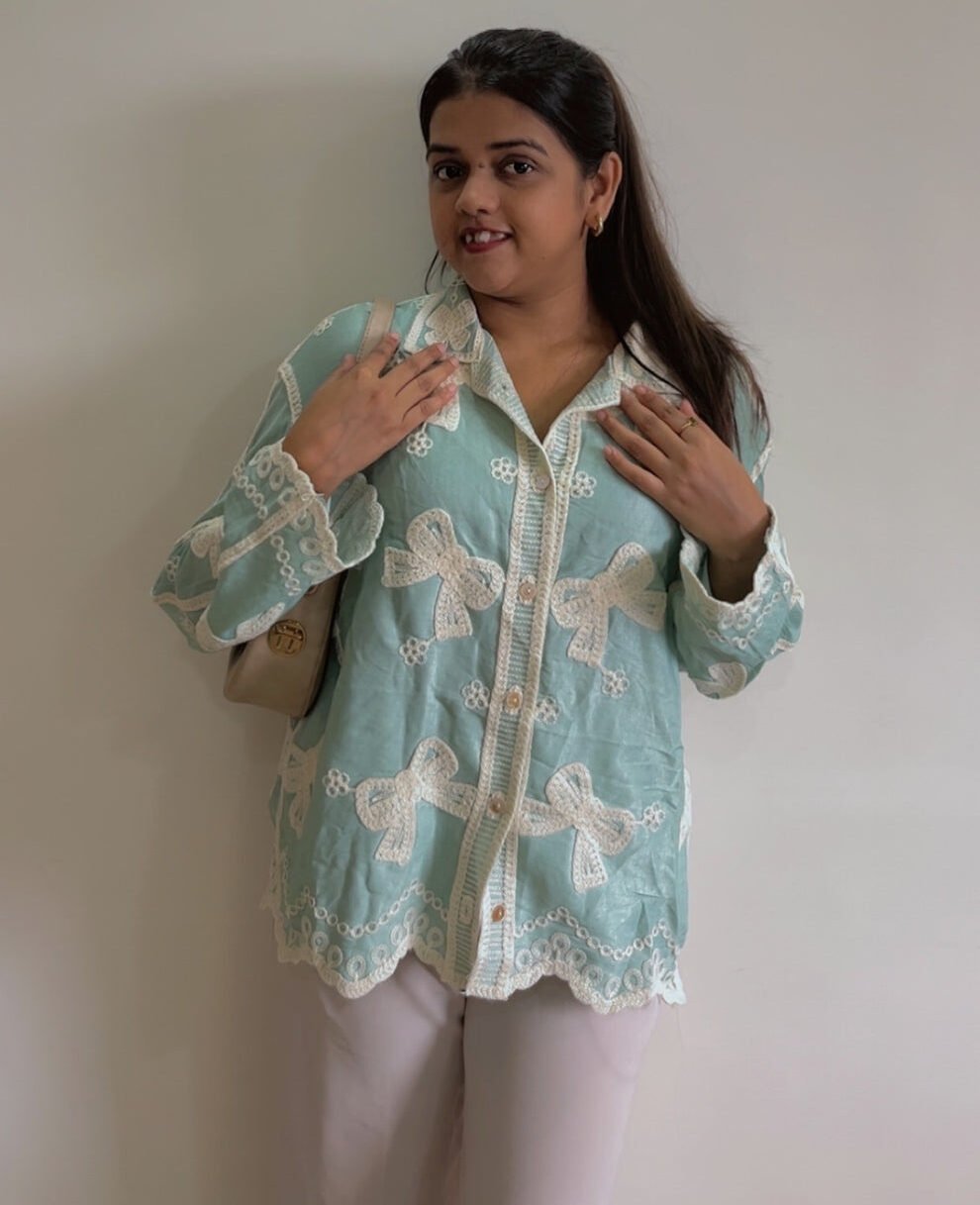 Trendy Embroidered Cotton Shirt With Bell Sleeves