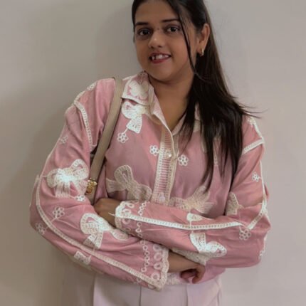 Classy Embroidered Cotton Shirt With Bell Sleeves