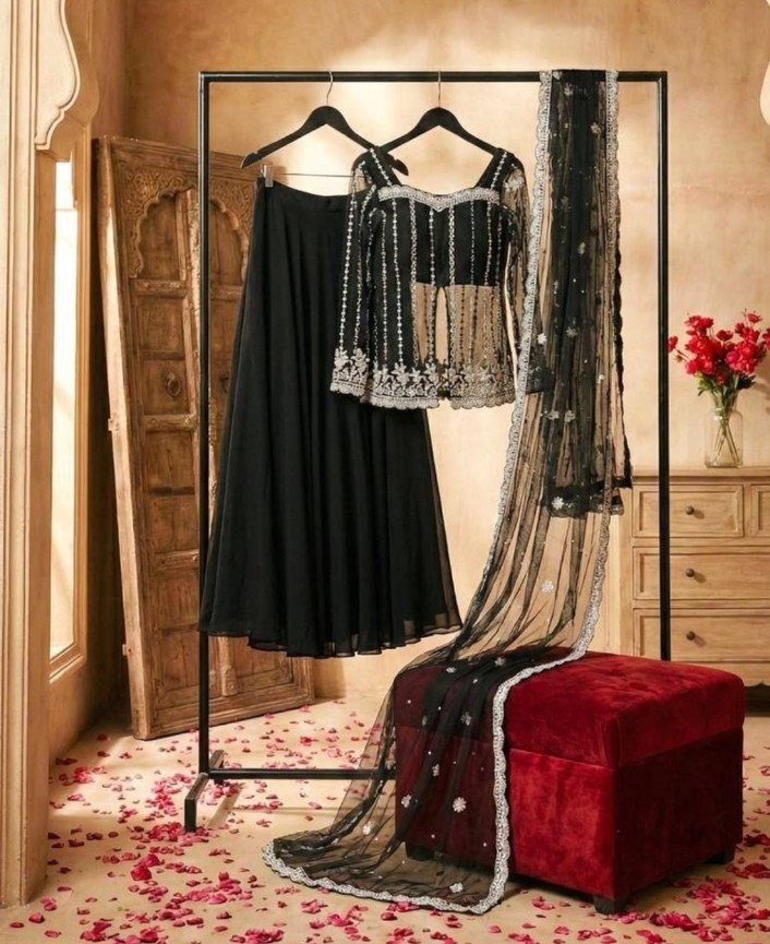 Black Silk Satin Lehenga Choli With Embroidery Work