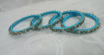 Material :- Blue Colour Silk Thread Bangles With Crown Shape And Rectangular Shape Kundans.