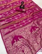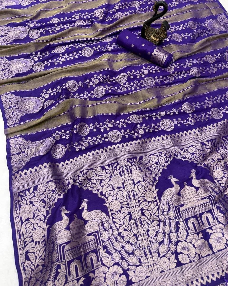 Pure Chinya Tisu Georgette Doubling Zari Jacqurad Weaving All Over Body Twins Peacock Skirt With Flower Veil And Beautiful Twins Peacock Rich Pallu Running Blouse Piece weaving All Over Buttis with Sleeves Border Dayeable Saree
