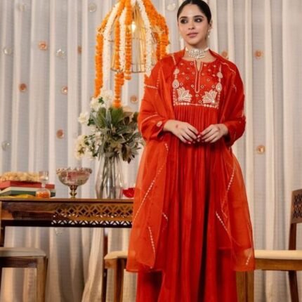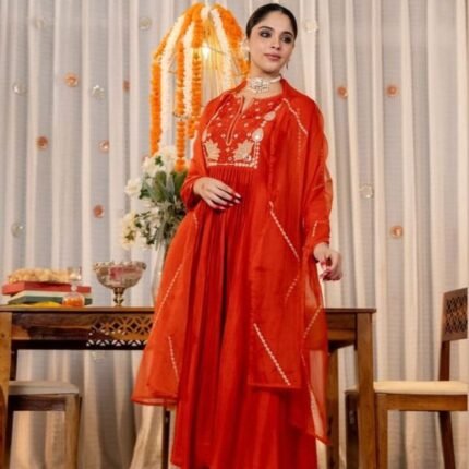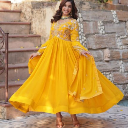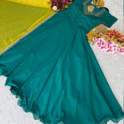 Gown With Dupatta, Pant, 9mm Rembo Sequins With Zari.