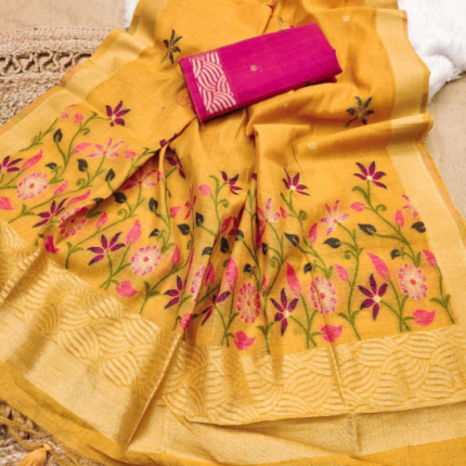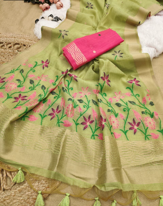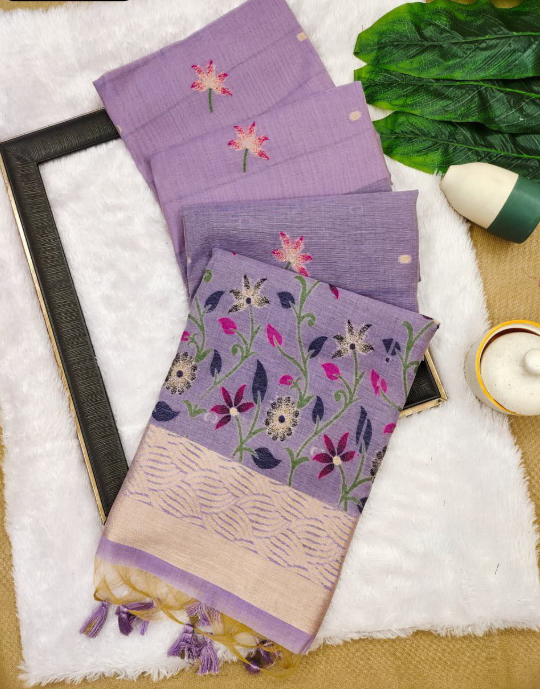 Latest Linen Cotton Floral Saree With Digital Print