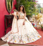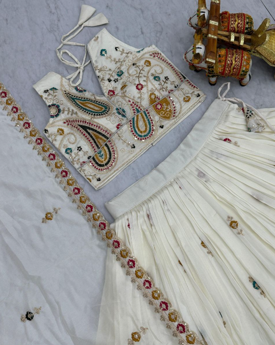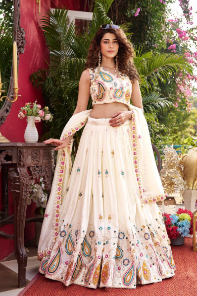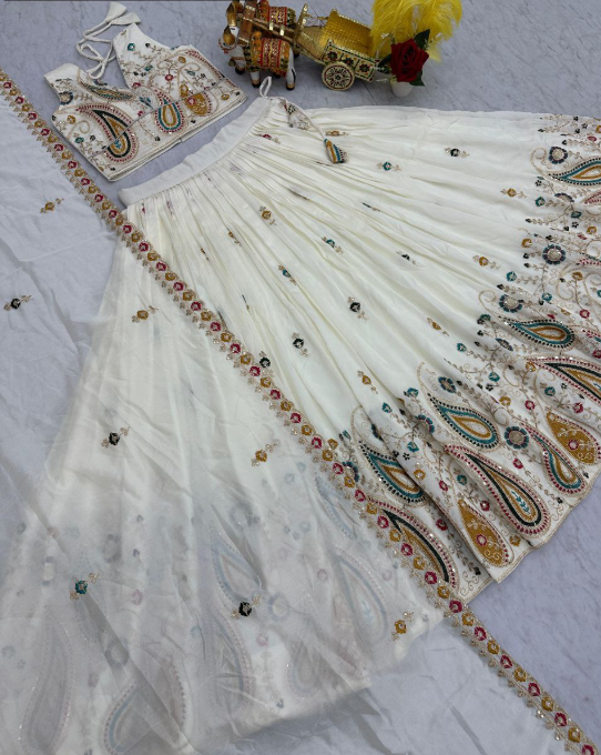 Home Festive Collection Classy White Vichitra Silk Sequins Embroidered Lehenga Choli