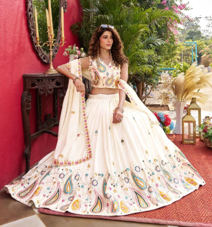 Classy White Vichitra Silk Sequins Embroidered Lehenga Choli - Flynker™ | Official Online Store