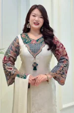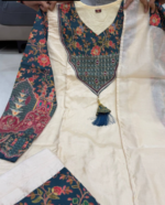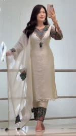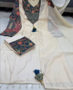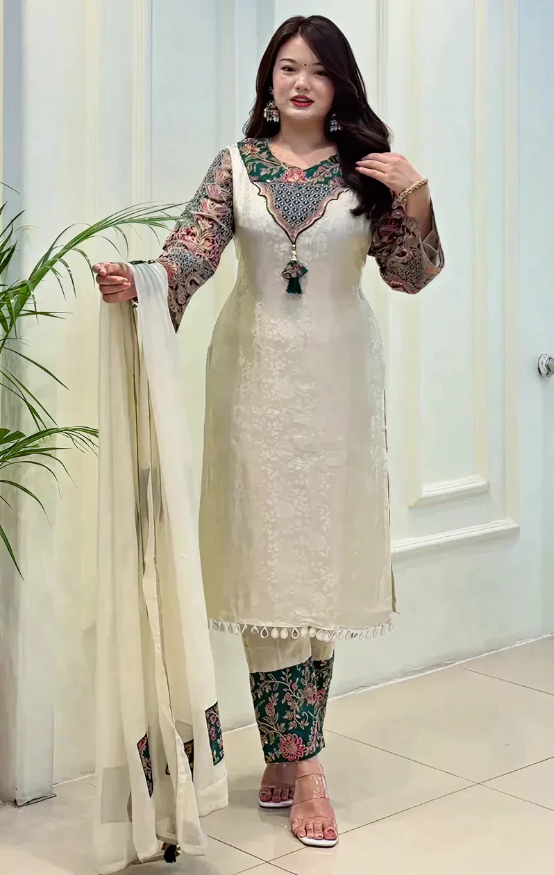 Cream Banarasi Silk Suit Set With Embroidery Work