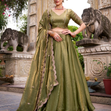 Home Festive Collection Fabulous Fendi Lehenga With Sequins Embroidery Work