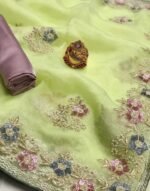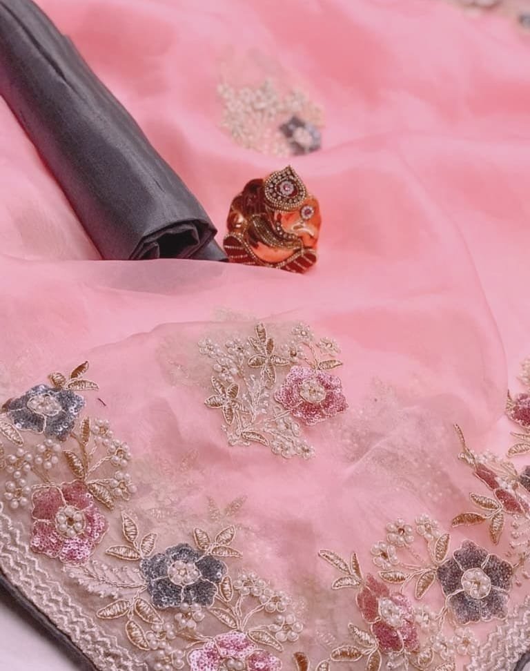 Fabric : Heavy Pure Organza Silk Saree Loaded With Heavy Contrast Color Double Sequins, Golden Embroidery Work And Butti Work On All Saree, Attached Beautiful Hand Stick Pearl Work On Saree With Piping On Border.