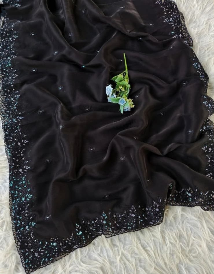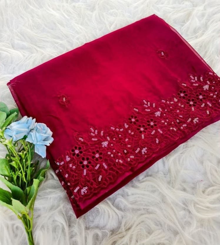 Pure Oxy Organza Zari Sarees With Viscose Embroidery Design And Sequins Work All The Saree.
