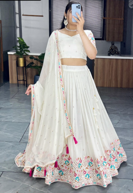 Package Contain Lehenga, Blouse, Dupatta, Drawstring With Zip, Tassels