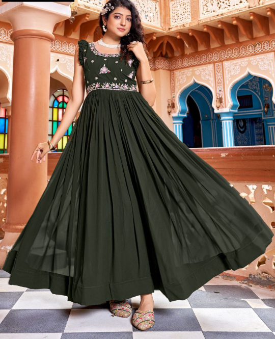 This Faux Blooming Designer Gown Is Luxury Clothing Considered To Be High Quality Made By Zari Sequins & Bits Work Embroidery. This Is Made For Desirable Women’s Who Deserve It.