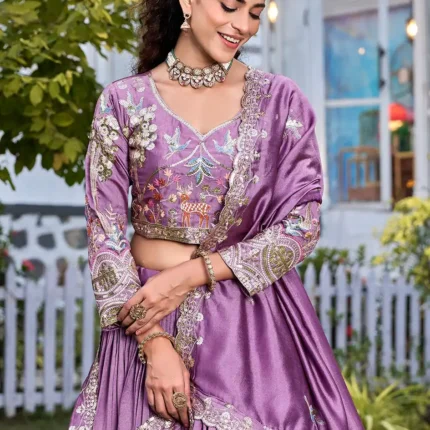 Classy Lavender Vichitra Silk Embroidered Lehenga Choli