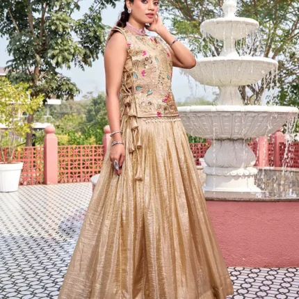 Classy Creamy Gold Crush Lehenga Choli With Embroidery Work ₹2,549.00 Original price was: ₹2,549.00.₹2,249.00Current price is: ₹2,249.00.