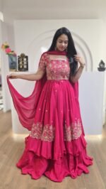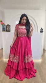 Gorgeous Magenta Pink Chinon Silk Lehenga With Sequins Work