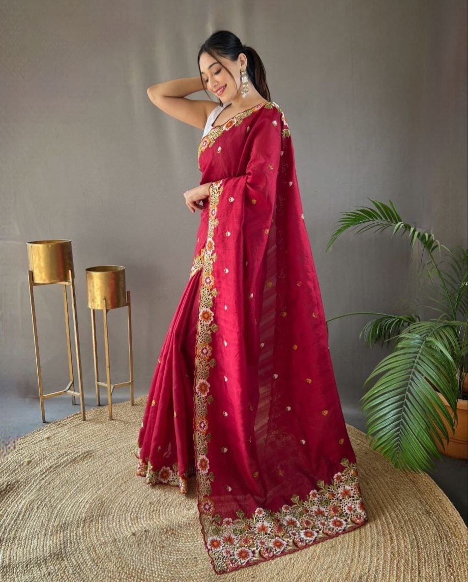 Premium Matka Silk Saree With Embroidery Work & Cutwork Big Pallu