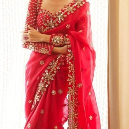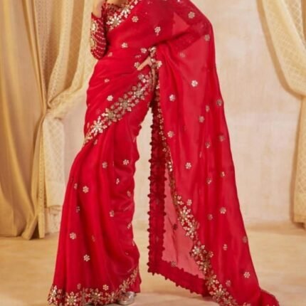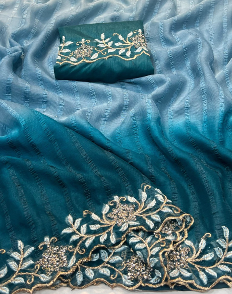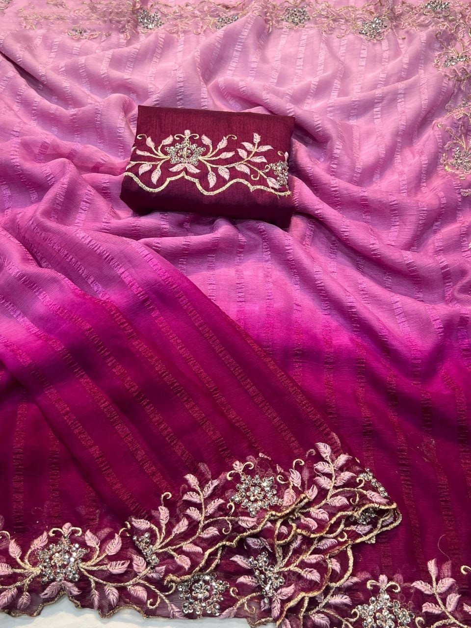 Beautiful Shimmer Georgette 3D Shaded Sarees With Pretty Embroidery With Diamond Work All Over the Saree Along. With Embroidery Cutwork Finishing Border Running Pallu.