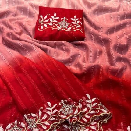 Beautiful Shimmer Georgette 3D Shaded Sarees With Pretty Embroidery With Diamond Work All Over the Saree Along. With Embroidery Cutwork Finishing Border Running Pallu.