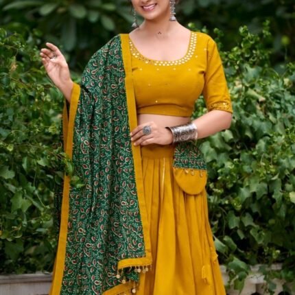 Fabric : Patta At Bottom To Hold The Embroidery And Finishing Of The Flare Latkan’s Adding The Charm.