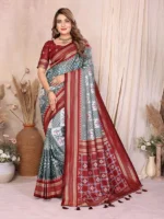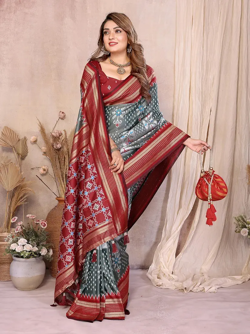 Home Hot Sale Grey Soft Silk Weaving Saree With Rich Zari Border