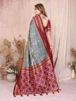 Soft Silk Ikkat Weaving Saree With Rich Zari Border.