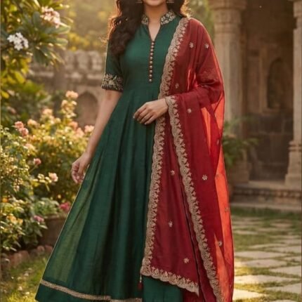Stunning Emerald Green Anarkali Set With Embroidery Dupatta