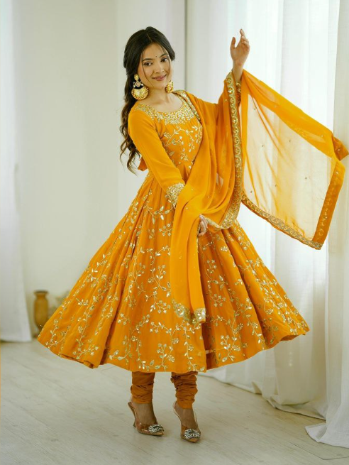 Gorgeous Faux Blooming Anarkali Gown With Sequins Embroidered Work