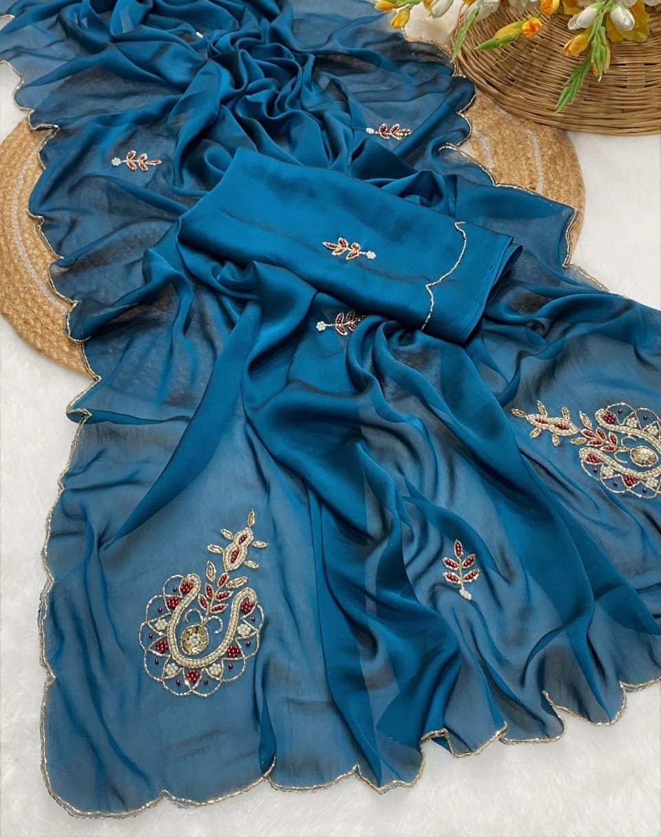 Blouse Details :- Running Blouse Having Handwork on Sleeves.
