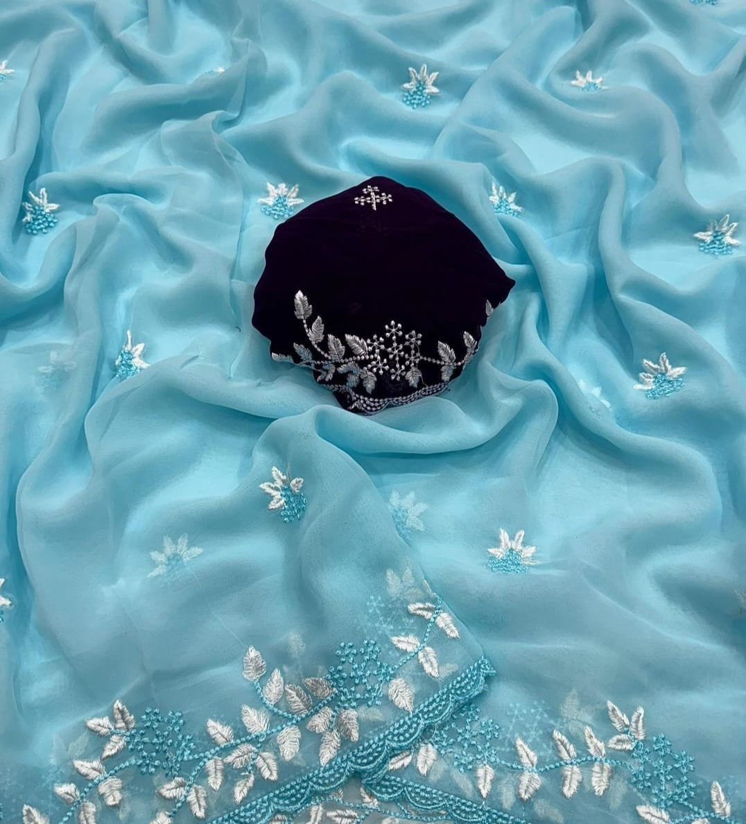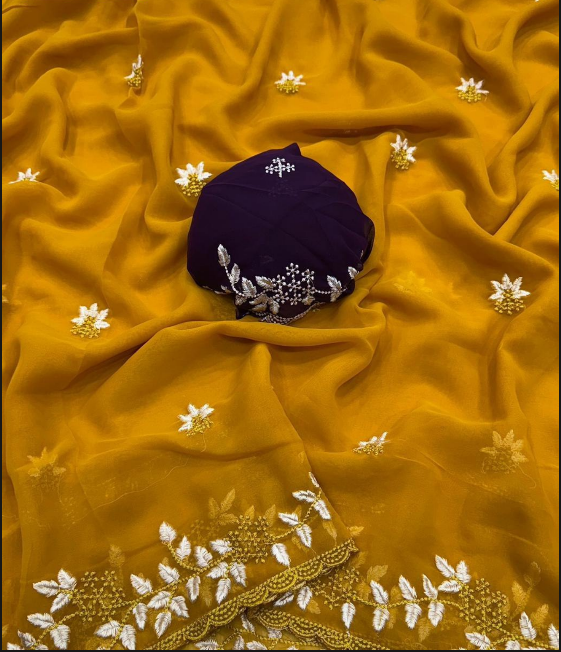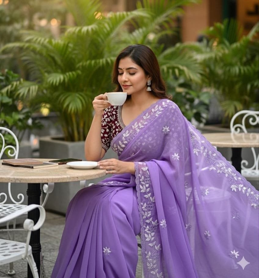 Fabric – Chiffon With Embroidery Panel Work With Beautiful Blouse.