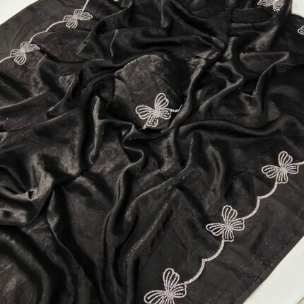 Exclusive Butterfly Design Self Embroidery Work Party Special Trendy Saree