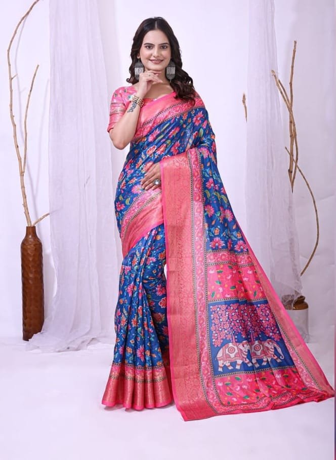 Saree Fabric :- Soft Dola Cotton Digital Print.(6.30m With Print Blouse)