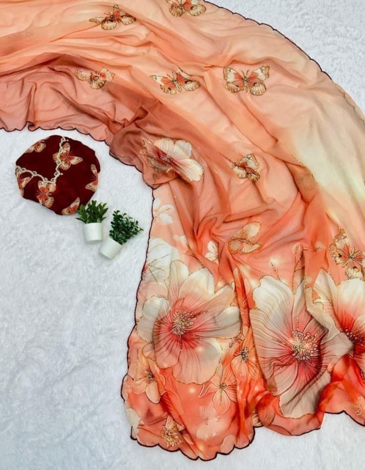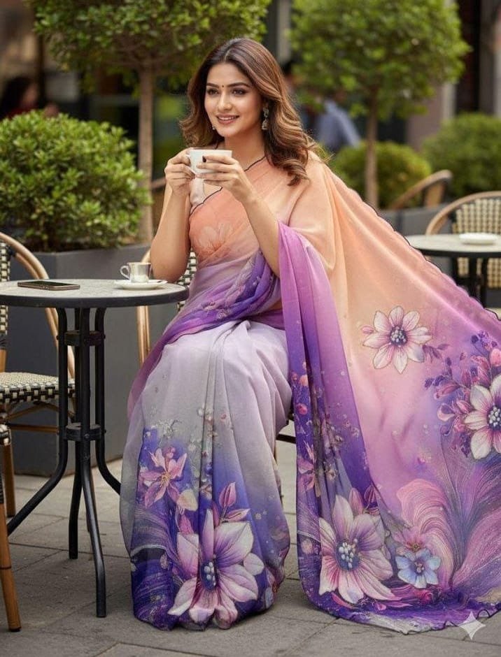 Trendy Chiffon Saree With Floral Digital Print