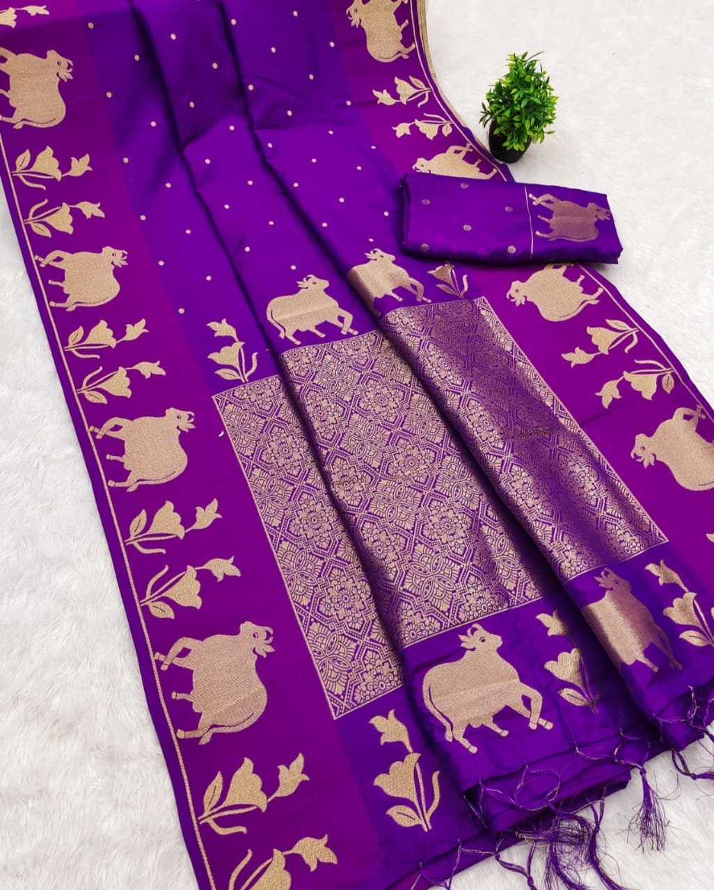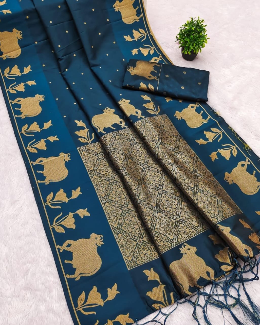 Latest Soft Katan Silk Saree With Printed Work - Flynker