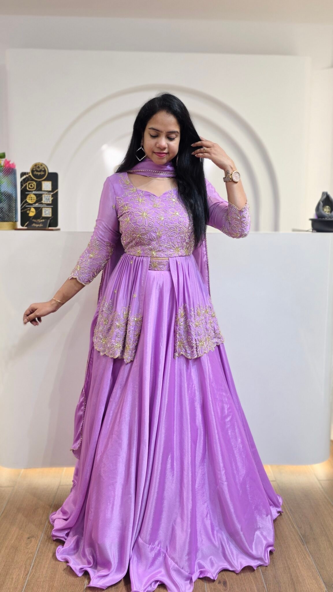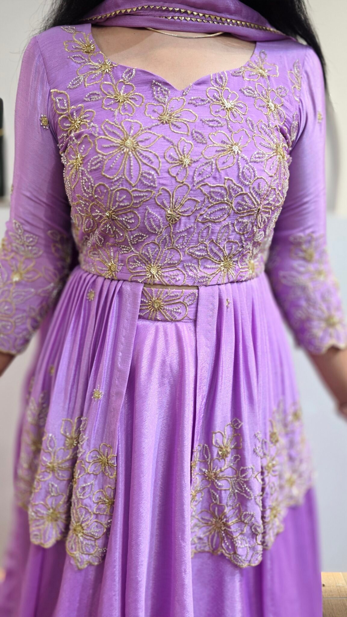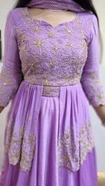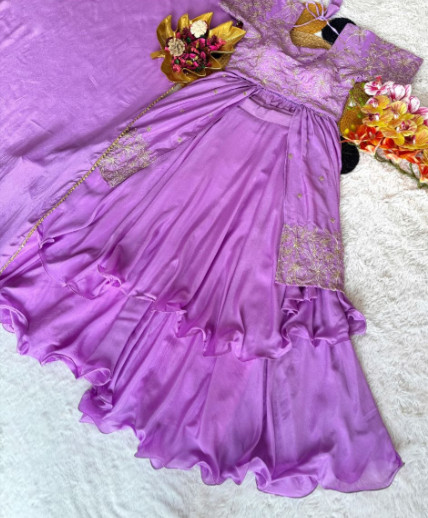 Lavender Chinon Silk Lehenga With Sequins Work