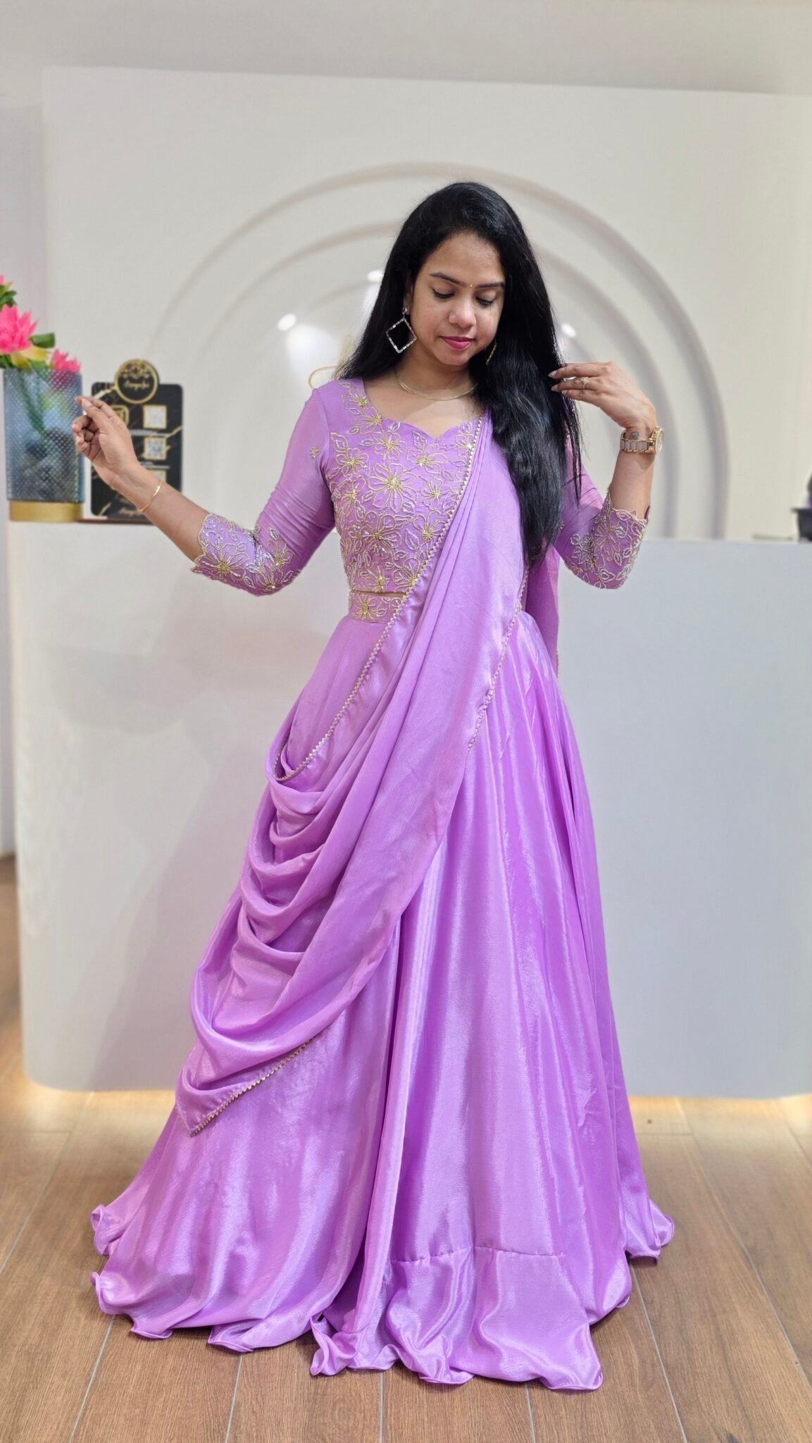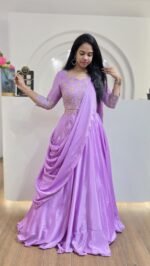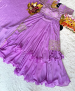 Stunning Lavender Fendy Satin Saree With Buttis Work