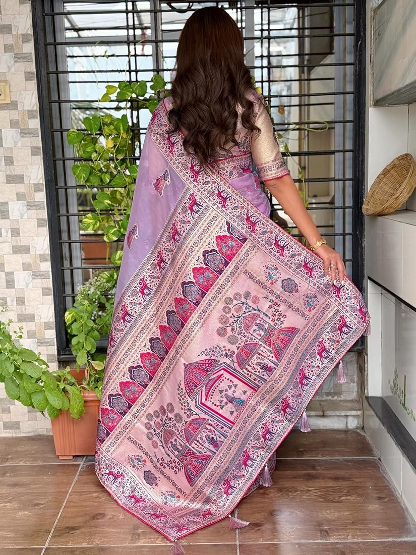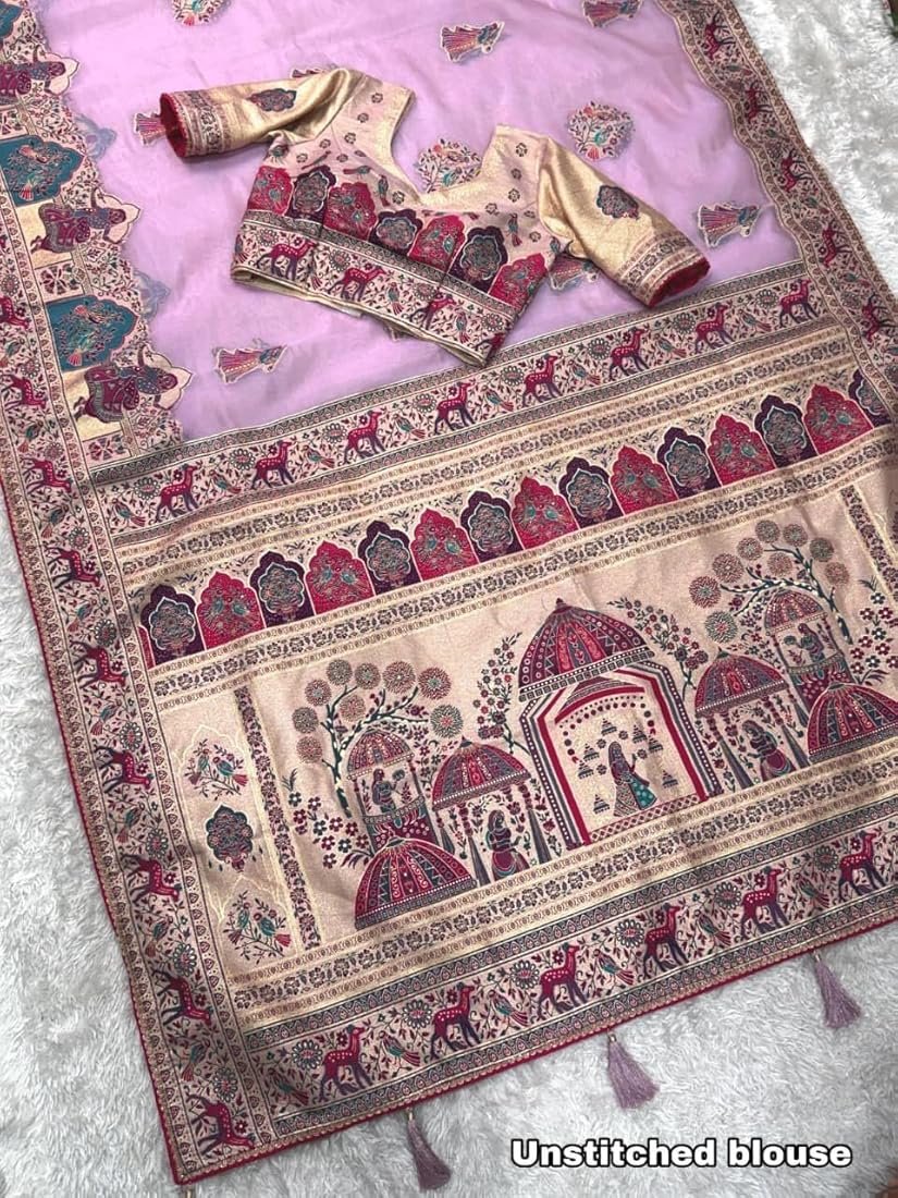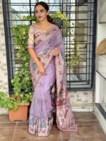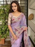 Home Hot Sale Lavender Pure Organza Jacquard Saree With Zari Weave Work
