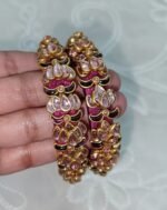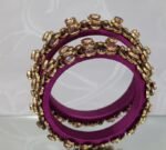 Material :- Deep Magenta Colour Silk Thread Bangles With Lotus Shape, Round Shape And Half Moon Shape Kundans.