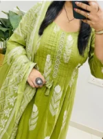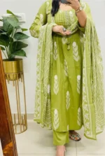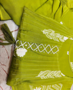 Home Hot Sale Mehendi Green Cotton Kurti Suit With Hand Work