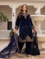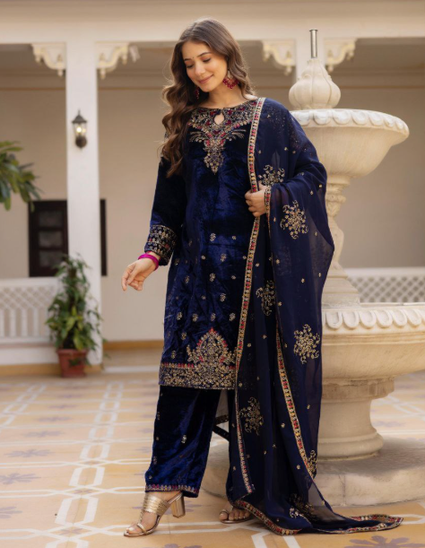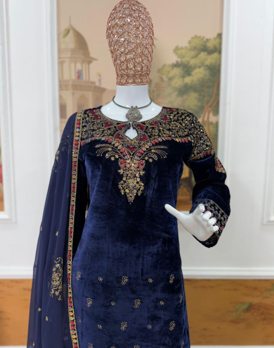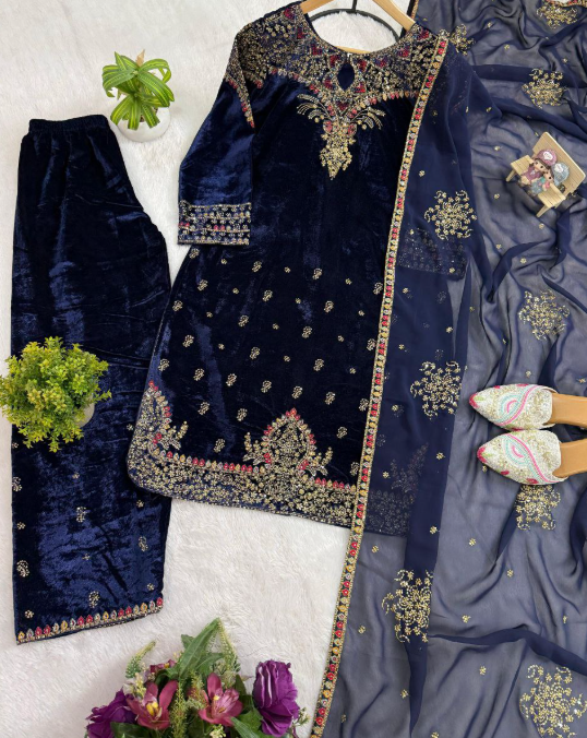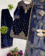 Velvet Kurti, Dupatta & Pant Is Coming With Embroidery Work.