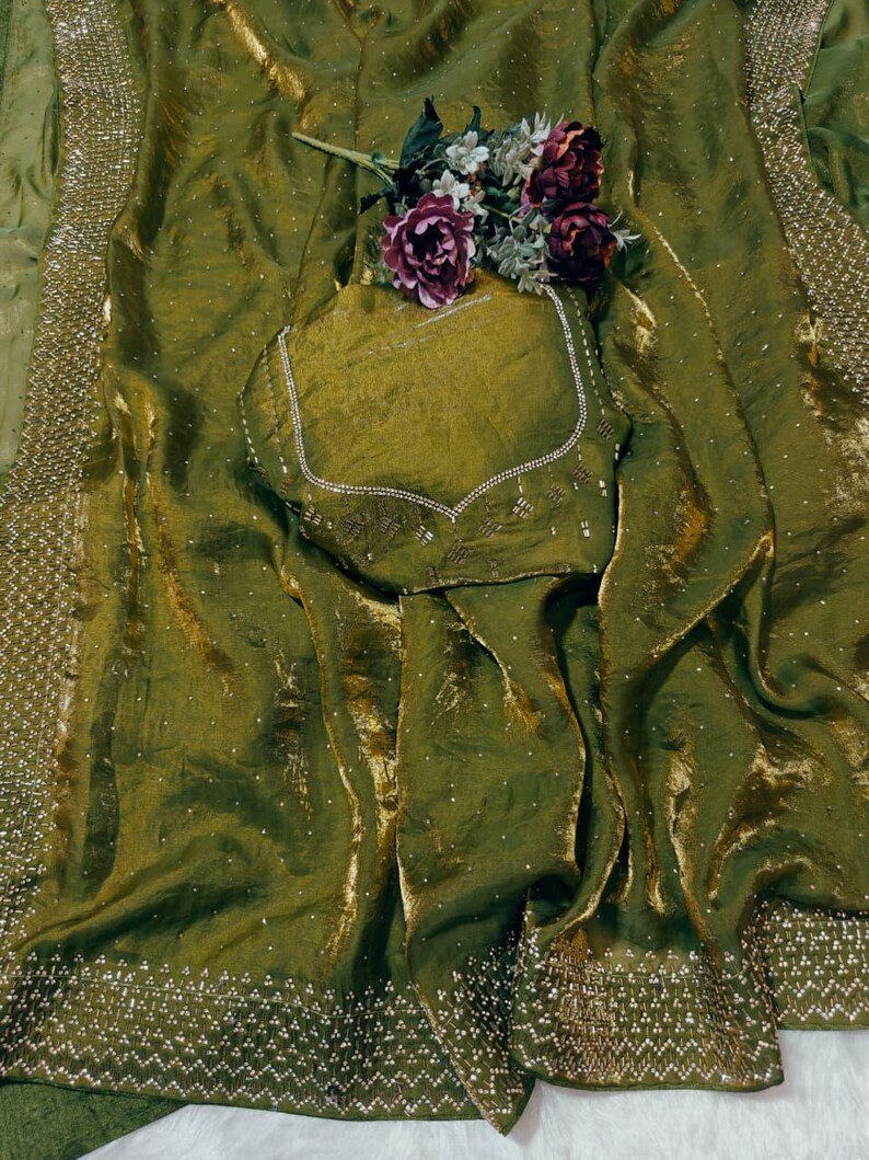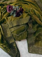 Home Hot Sale Olive Green Soft Space Silk Saree With Dual Shaded Fabric