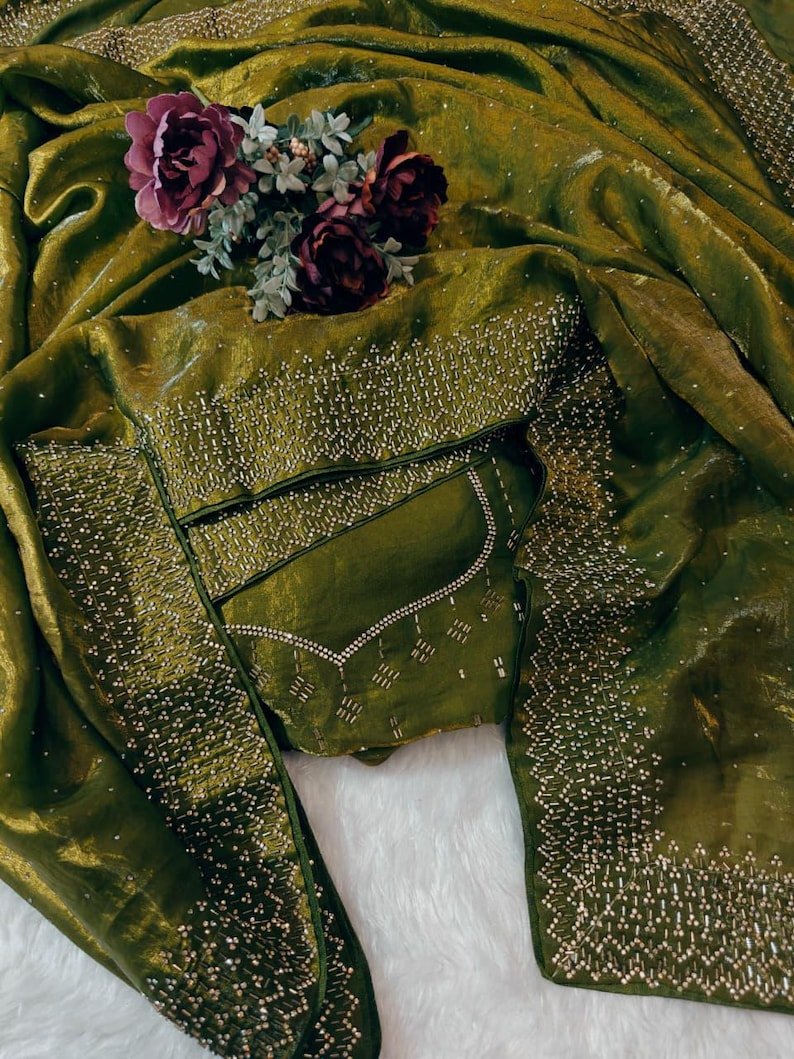 Blouse :- Space Silk Fabric Along With Designer Original Jarkan Work Border (Un Stitched).