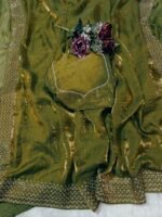 Olive Green Soft Space Silk Saree With Dual Shaded Fabric