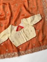 Be the first to review “Party Wear Panoply Orange Handwork Tissue Silk Saree” Cancel reply