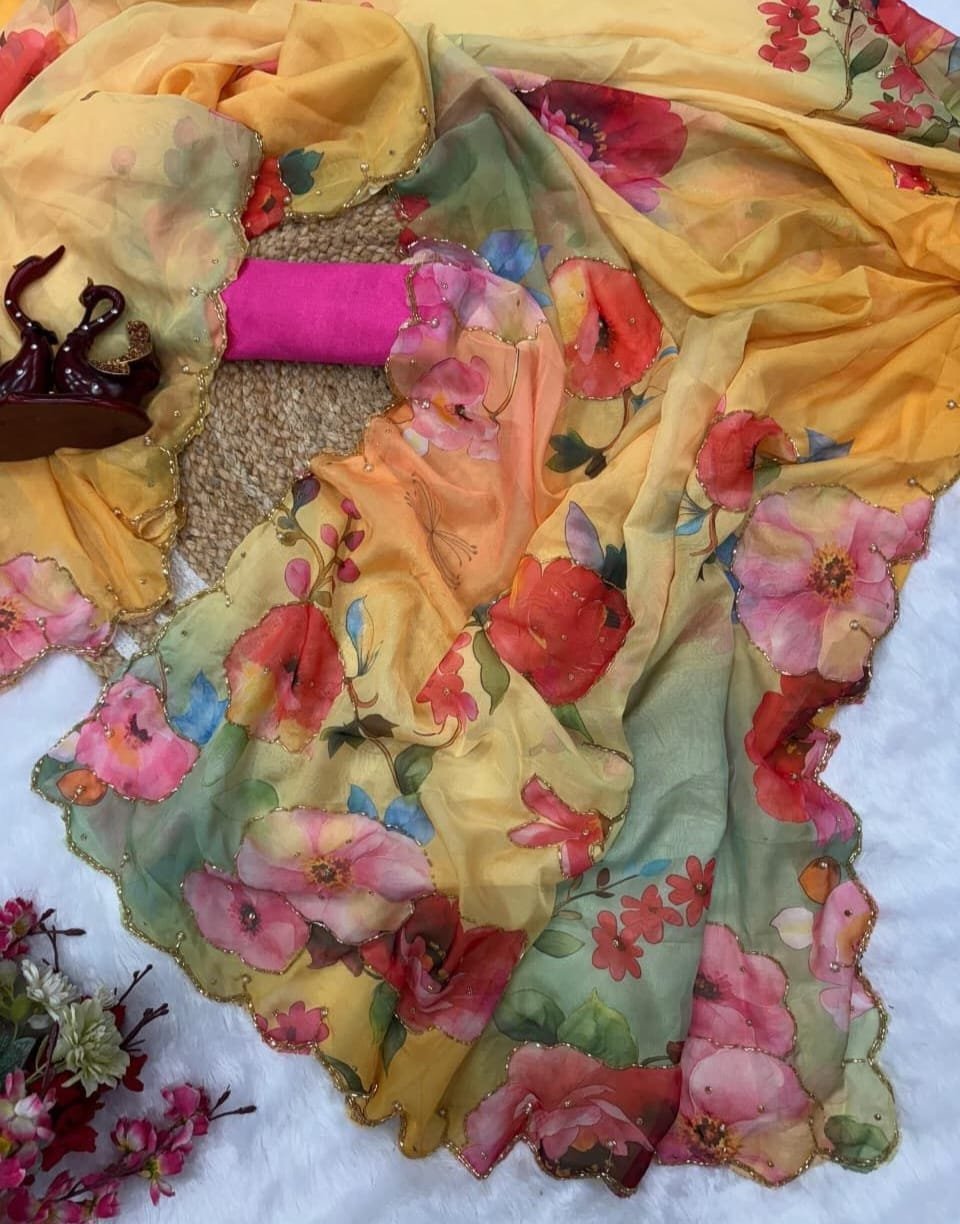 Pure Soft Georgette Silk Saree With Beautiful Digital Floral Print