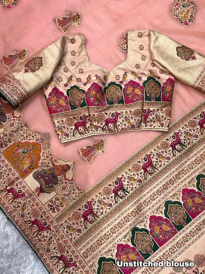1 – Zari Weaving With Multi Colored Minakari Jacquard In Full Saree With Rich Pallu.