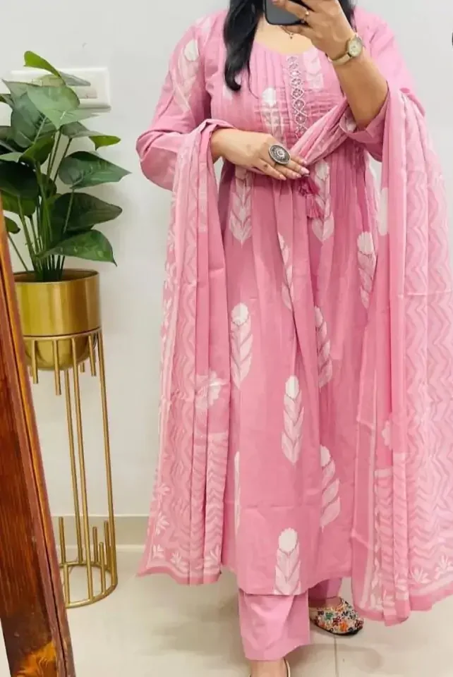 Home Hot Sale Pink Cotton Kurti Suit With Hand Work