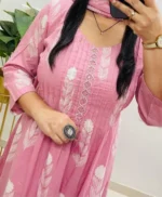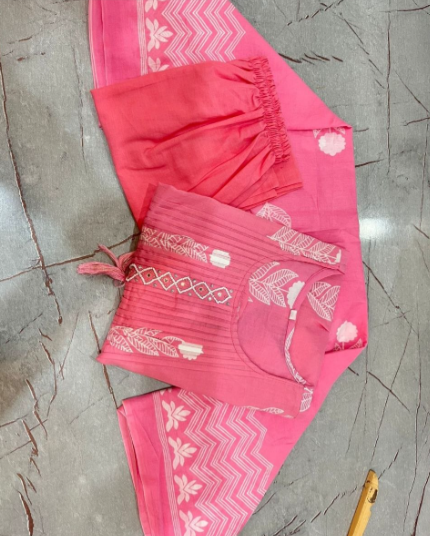Pink Cotton Kurti Suit With Hand Work