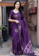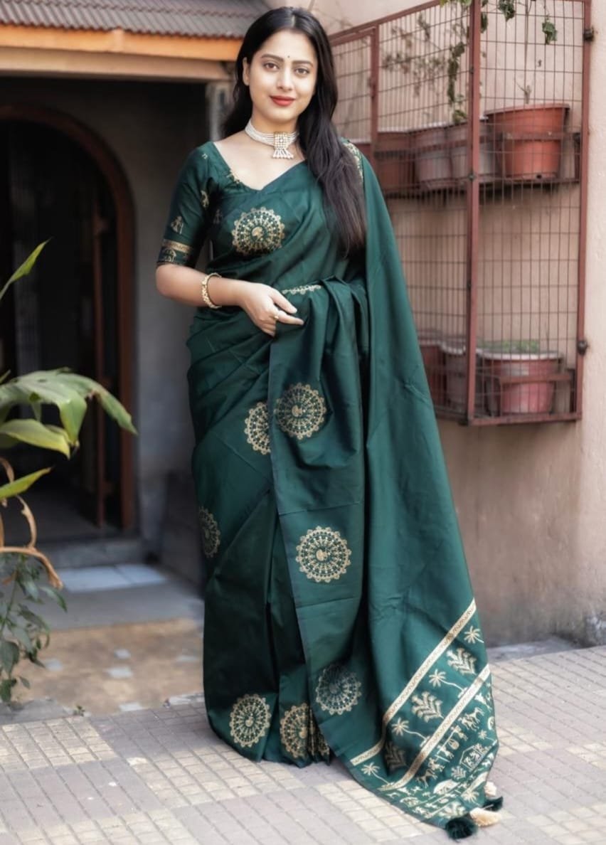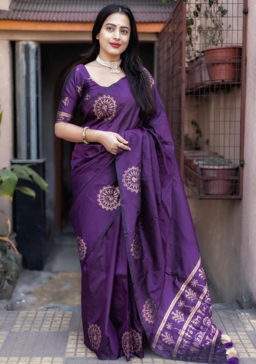 Soft Silk Saree With Zari Woven Worli Design.