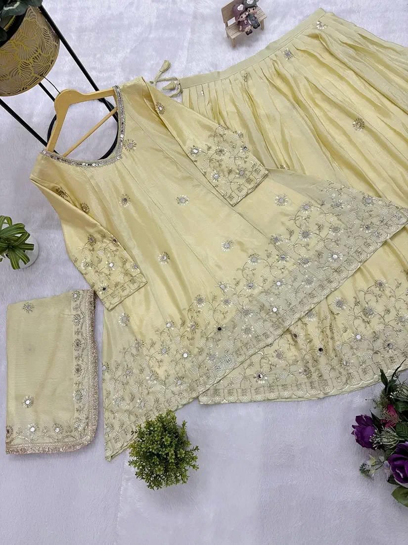 Top, Bottom & Dupatta With Embroidery & Real Mirror Work