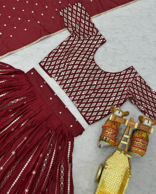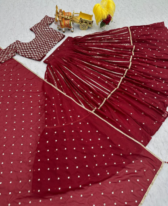 Premium Red Georgette Sequins Lehenga Choli - Flynker™ | Official Online Store
