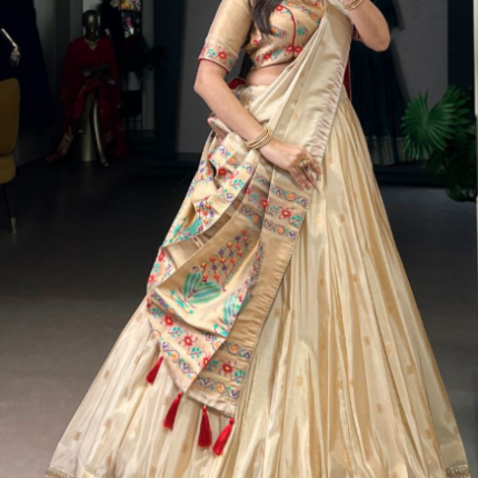 Royal Beige Gold Shimmer Lehenga With Paithani Zari Weaving